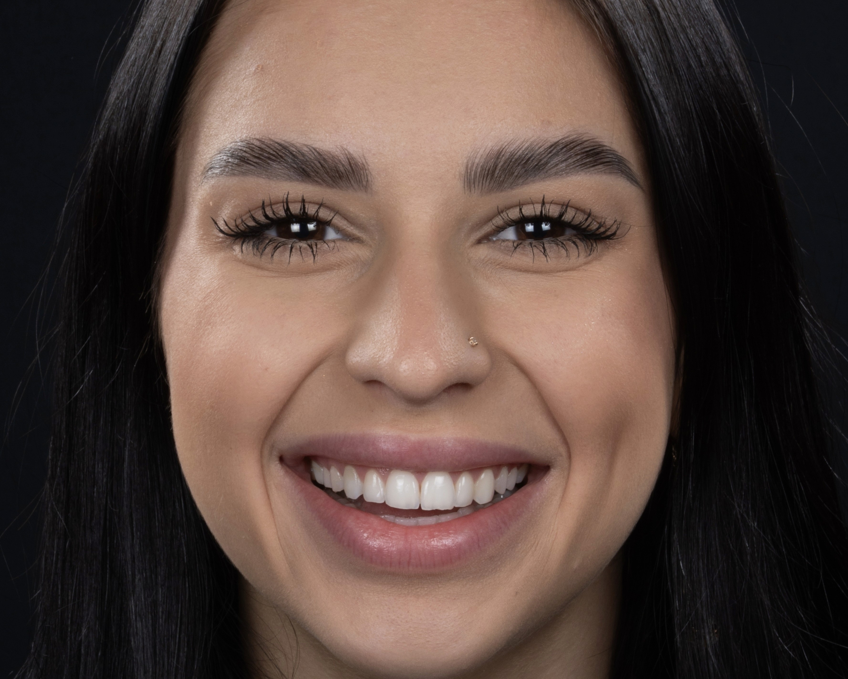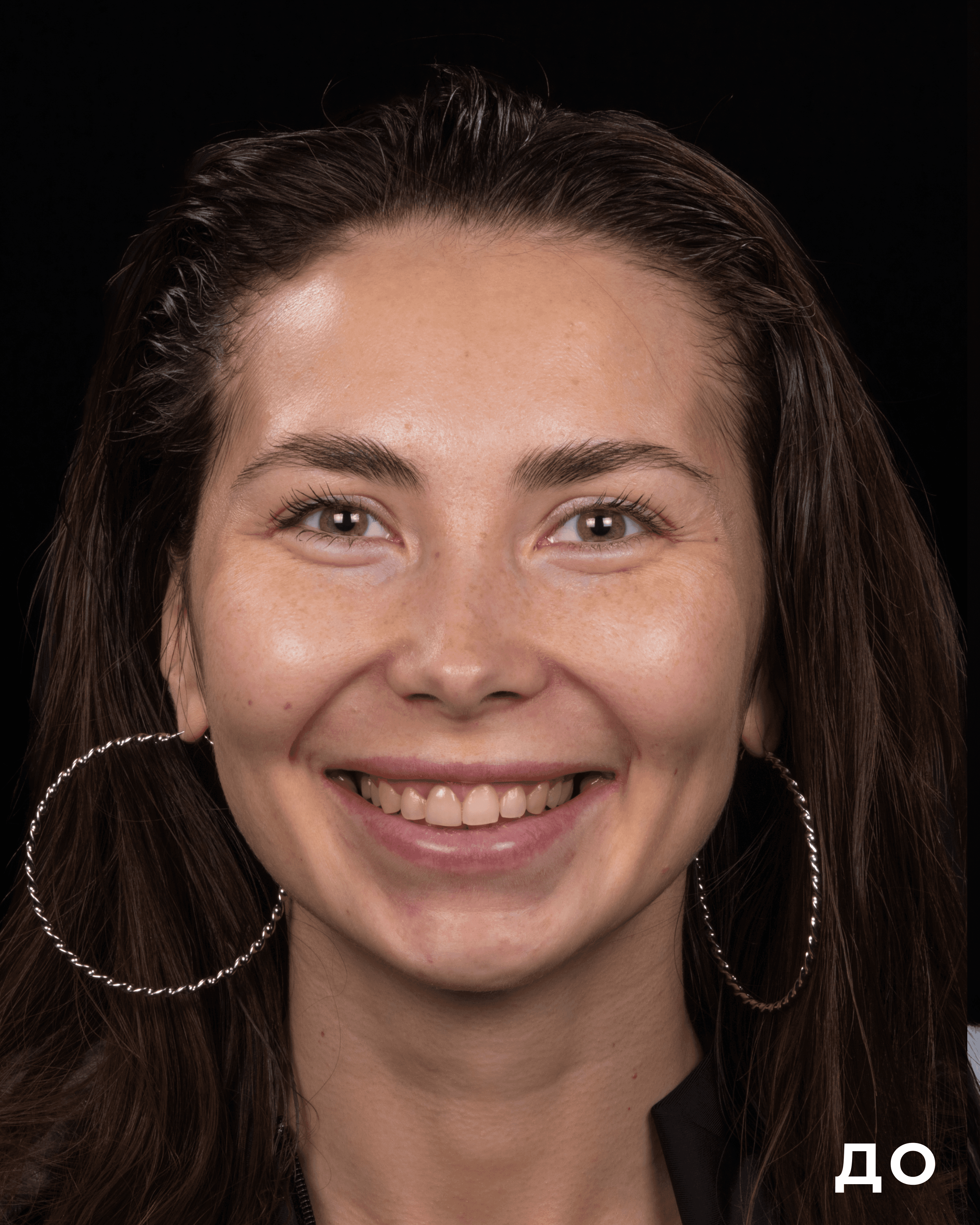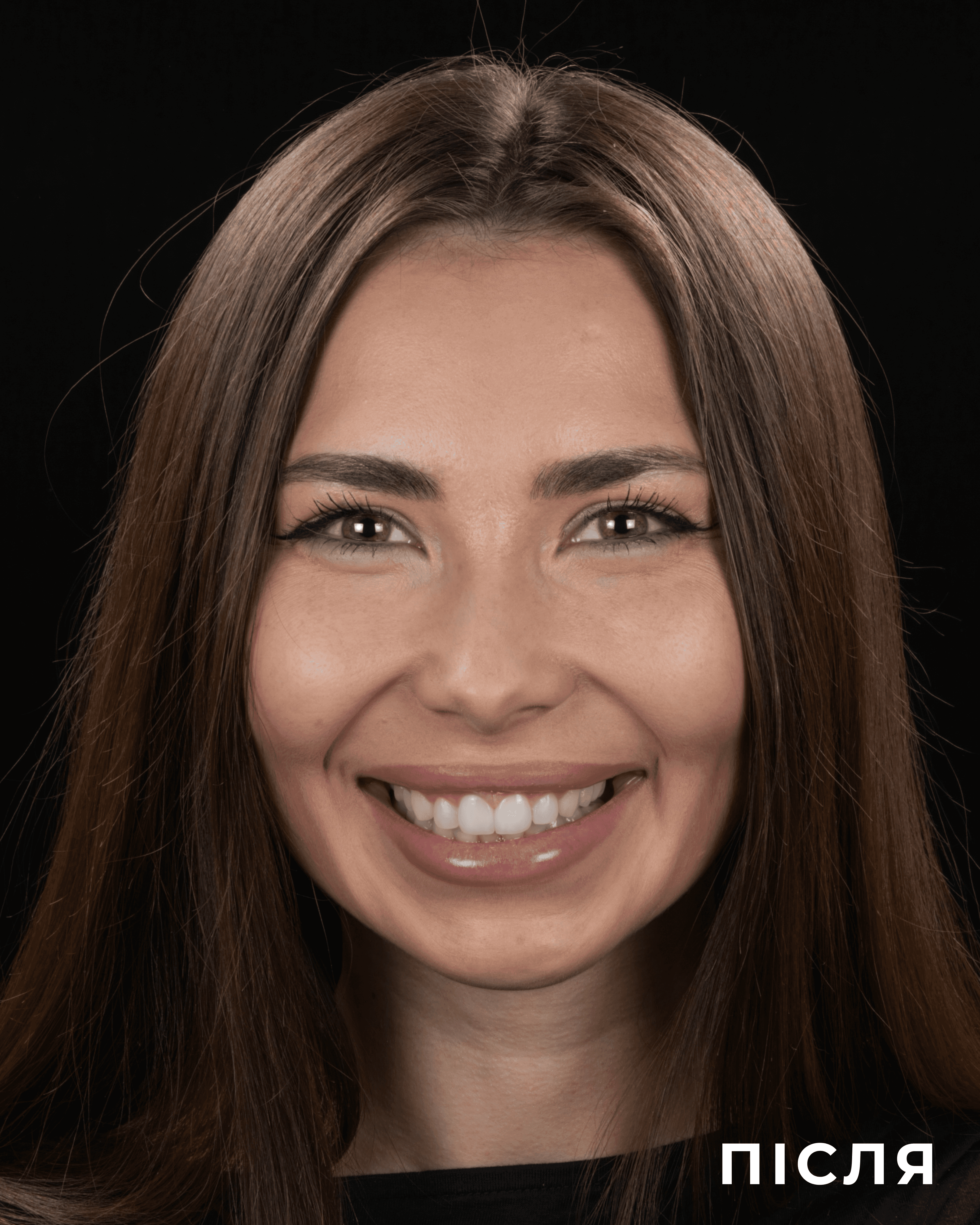 Скарги: не задовольняє естетичний вигляд, темний колір зубів. Причина: темно-жовтий колір зубів від природи. Підготовка: лікування карієсу, безпечне відбілювання за допомогою кап із фіксацією результату до 5 років. Реабілітація: помірна чутливість зубів під час відбілювання та протягом тижня після завершення процедури відбілювання. Результат: свіжа, яскрава усмішка, відновлена форма зубів, естетика повністю задовольняє пацієнта.